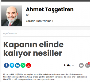 İslamcı iktidarın ülkeyi getirdiği bu yerden yakınan bir diğer İslamcı kalem de Ahmet Taşgetiren oldu. Yazar “Kapanın elinde kalıyor nesiller” başlıklı yazısında AKP’nin yeni kuşaklar üzerinde uygulamaya çalıştığı siyasal mühendislik projesinin sonuçlarını ciddi şekilde eleştiriyor.